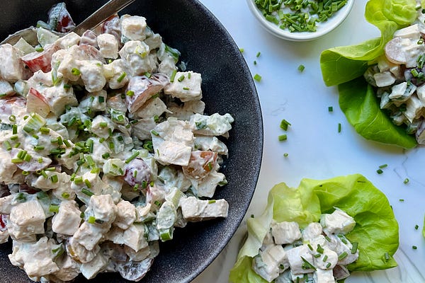Protein-packed chicken is tossed in a creamy dressing with juicy grapes, crunchy celery, and crisp green onion to create the yummiest chicken salad…