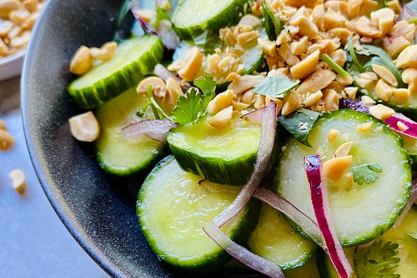 Crisp cucumbers and red onion are marinated in a sweet and sour vinaigrette. Garnished with fresh cilantro and chopped peanuts, this restaurant-quality…