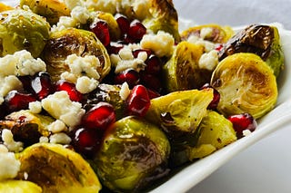 Perfectly roasted and caramelized Brussels sprouts are tossed in a balsamic glaze and topped with blue cheese crumbles and pomegranate arils. A flavor…