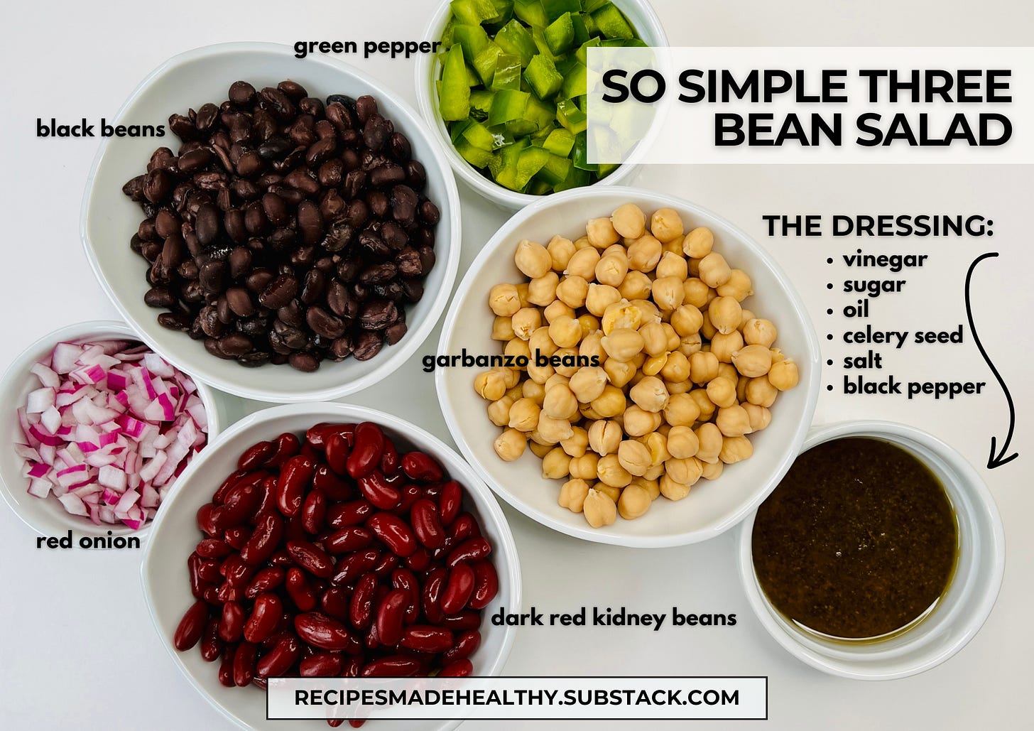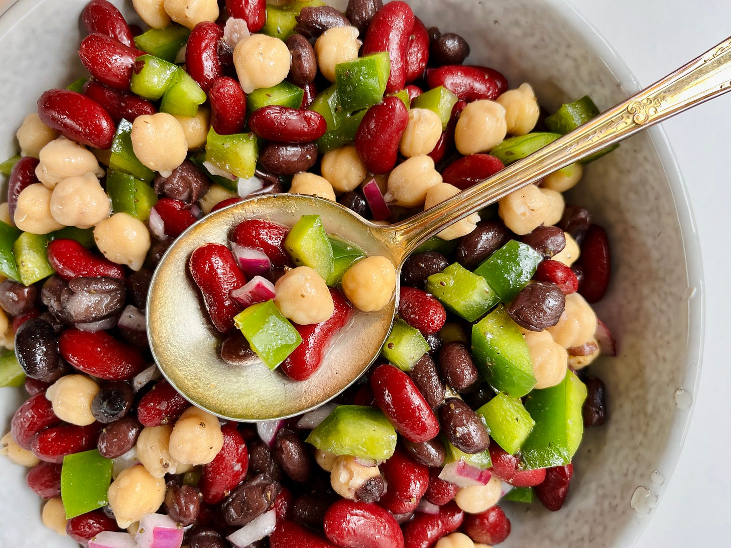 A classic summer potluck salad that couldn’t be easier to make. A trio of fiber-packed beans, along with green pepper and onion are tossed in a sweet and sour dressing. So simple, so good!